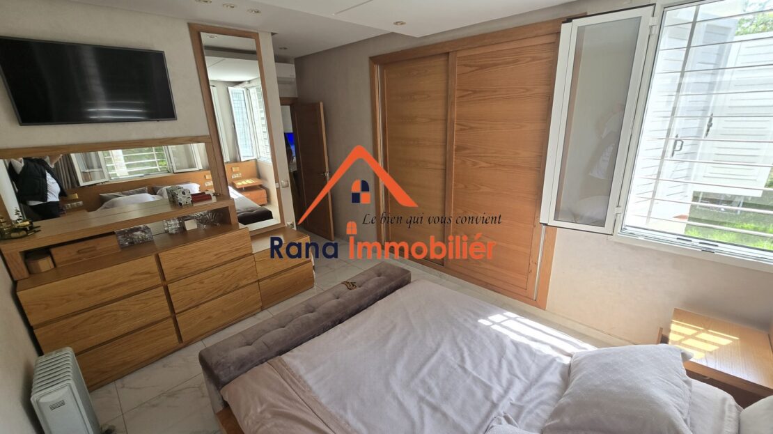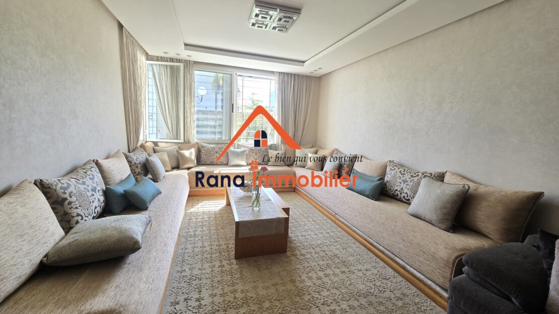 Nous mettons en vente un luxueux appartement Rez-de-jardin d’un superfice de 111 m² plus le jardin Haut Standing situé au quartier Hay Riad proche de tous les commerces et commodités.