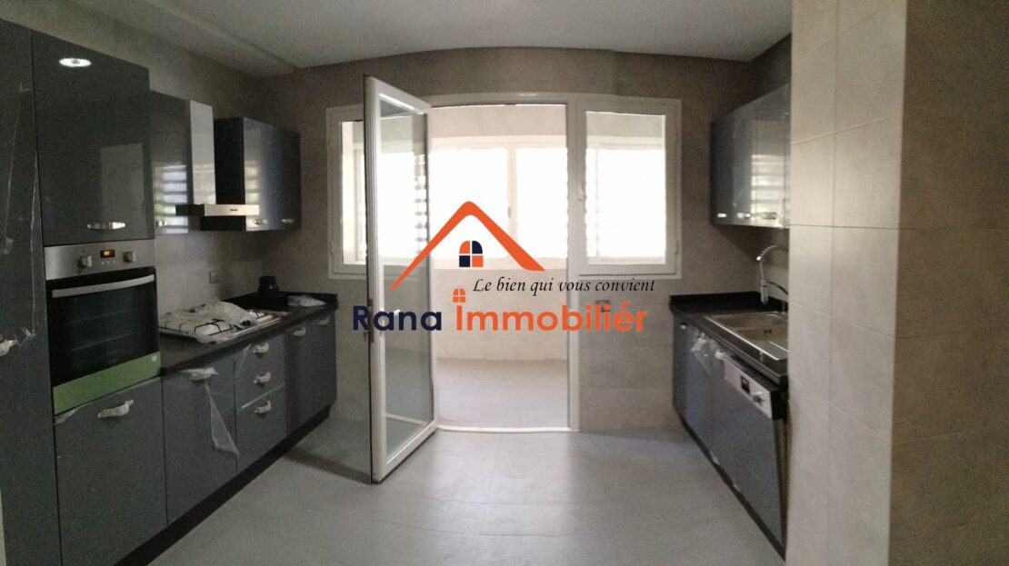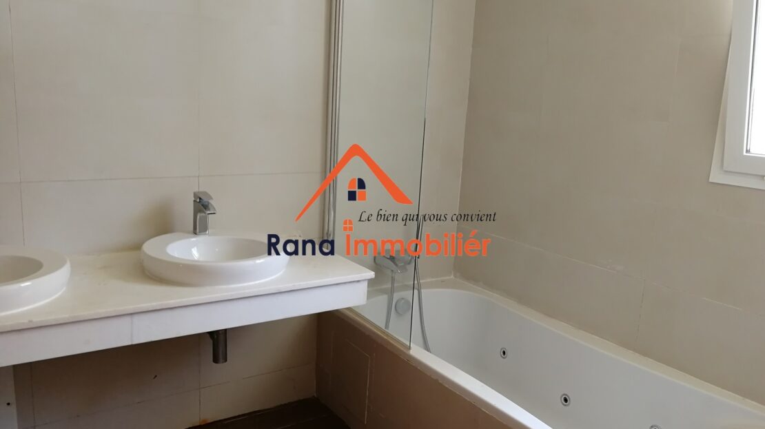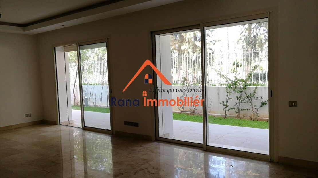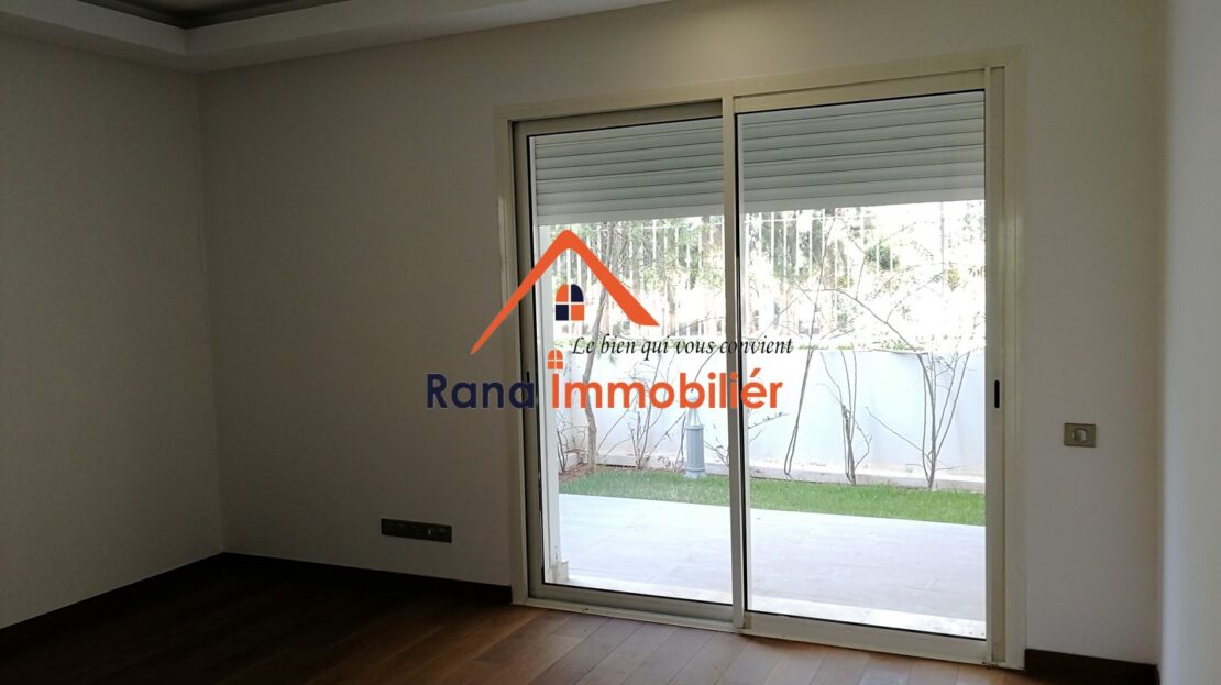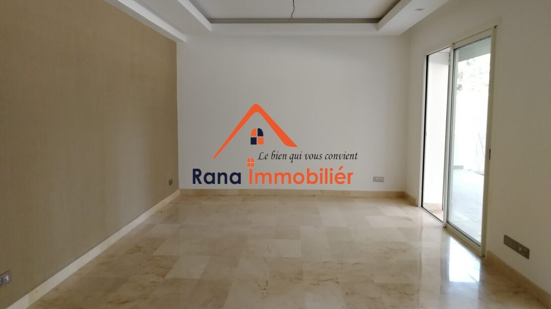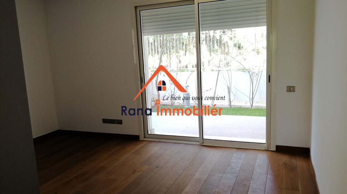 Nous mettons en vente un luxueux appartement Rez-de-jardin d’un superfice Total de 374 m² ( 216m² habitable, 93m² Jardin privatif, 65m² Terrasse ) Haut Standing situé au quartier l’Orangeraie Souissi proche de tous les commerces et commodités.