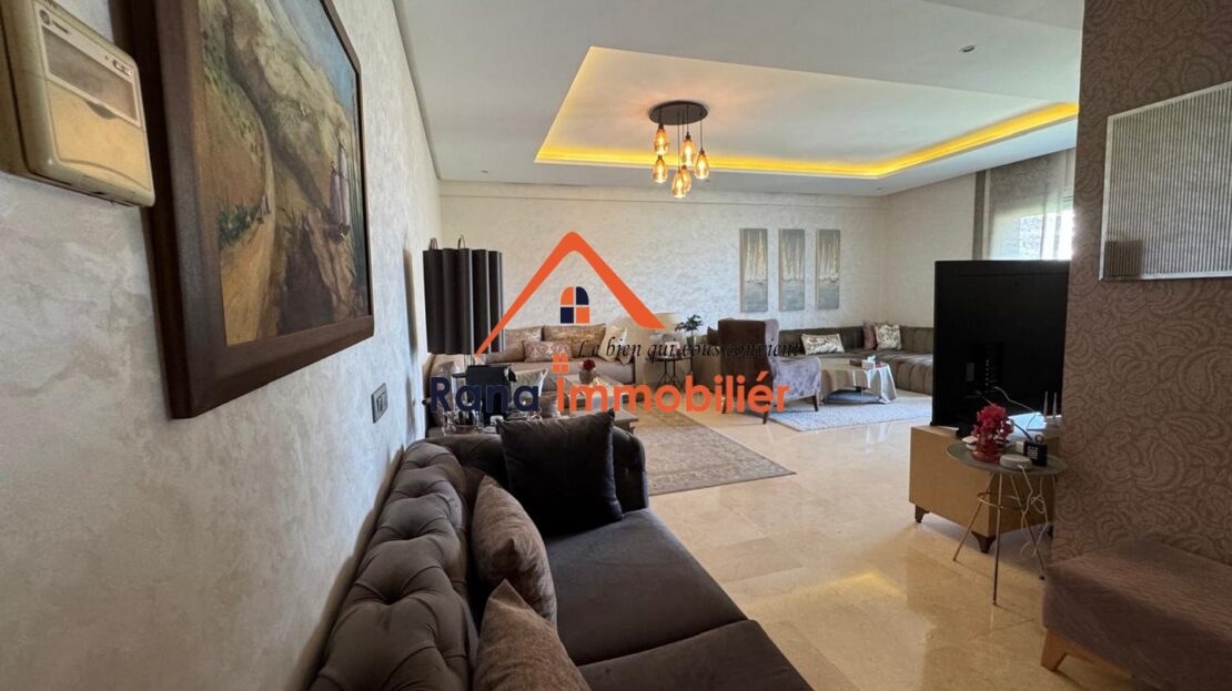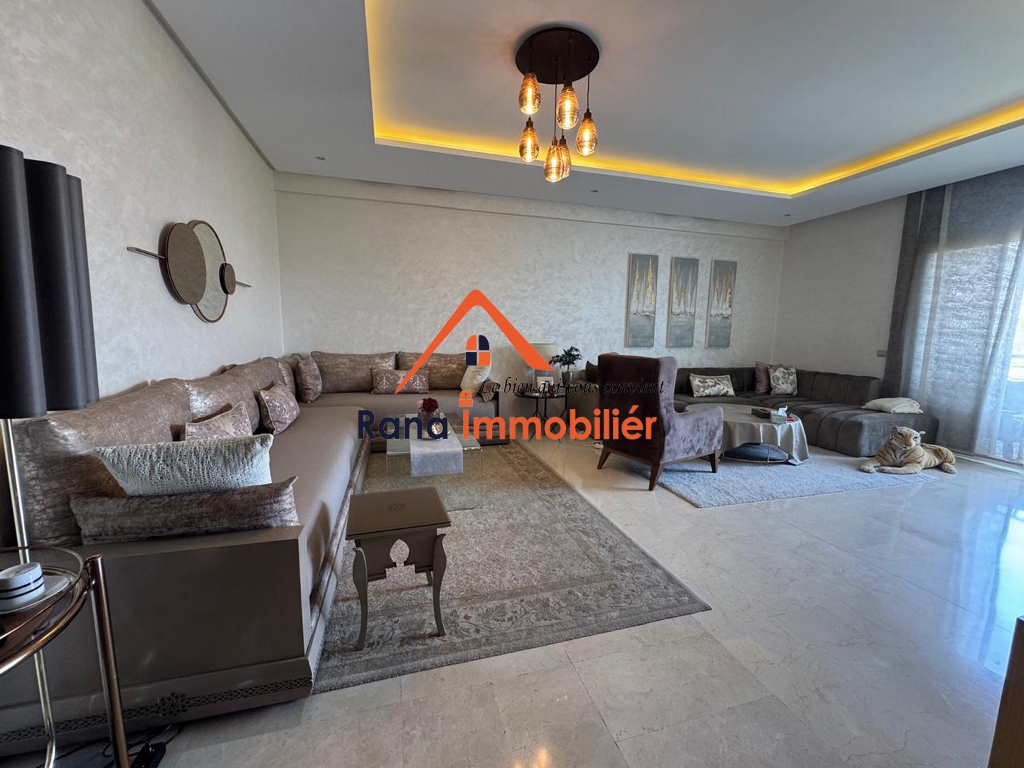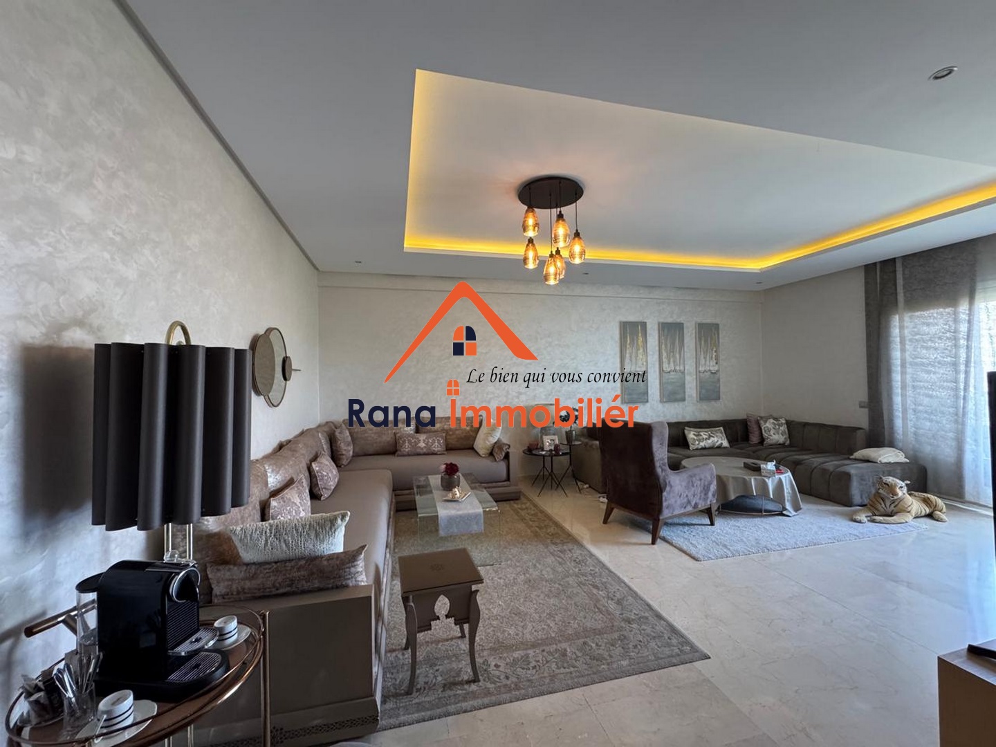 nous mettons un appartement meublé en location haut standing d’un superficie de 160 m² situé au Hay Riad Prestigia sur 3éme étage dans un immeuble calme et ensoleillé , aménagement soigné et beau matériaux .