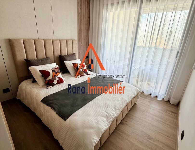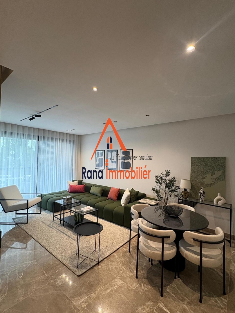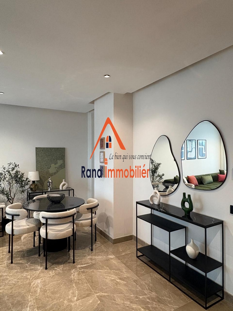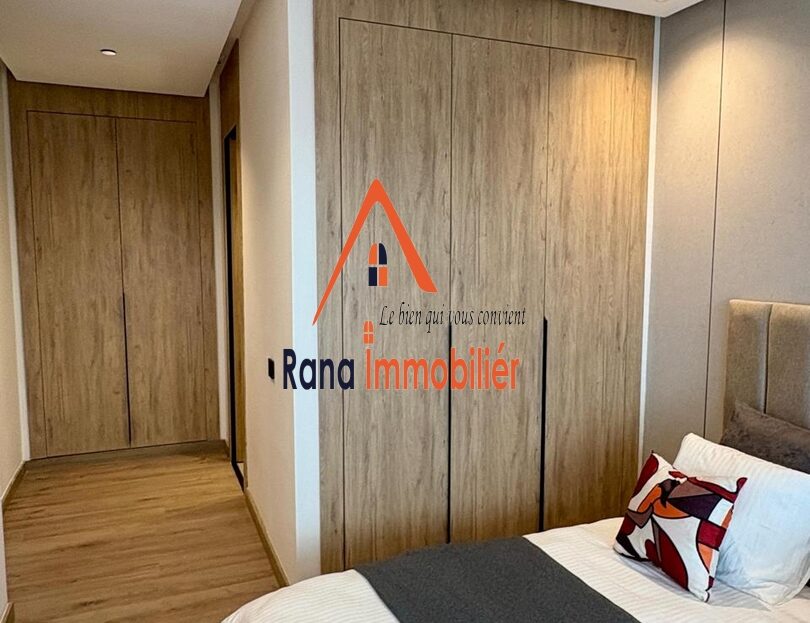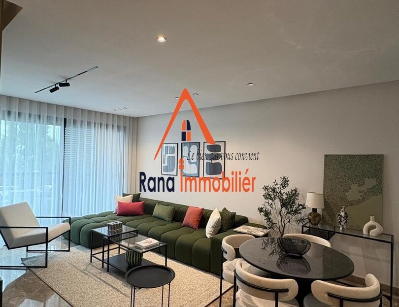 Un appartement meublé de haut standing superficie de 120 m² dans une Résidence fermée situé sur L’orangerai Souissi en location au 2éme étage avec l’ascenseur dans un immeuble calme et ensoleille, aménagement soigne et beau matériaux.