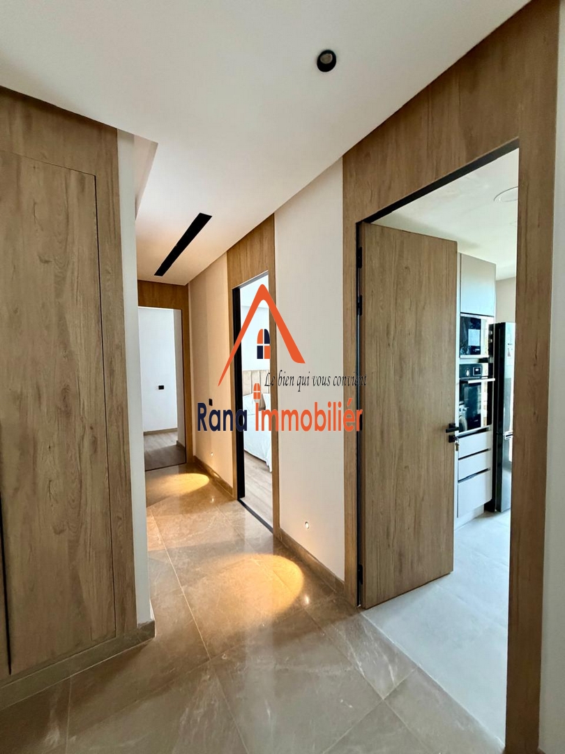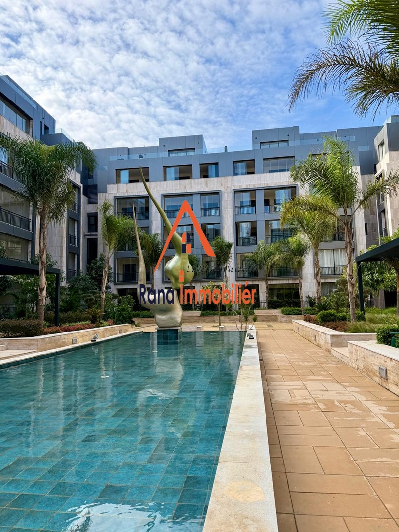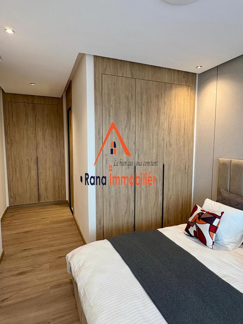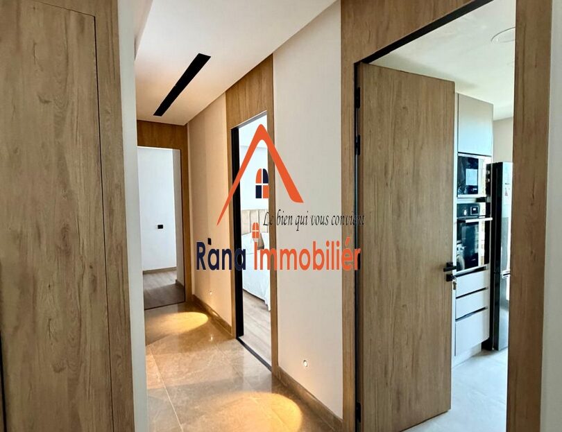 Un appartement meublé de haut standing superficie de 120 m² dans une Résidence fermée situé sur L’orangerai Souissi en location au 2éme étage avec l’ascenseur dans un immeuble calme et ensoleille, aménagement soigne et beau matériaux.
