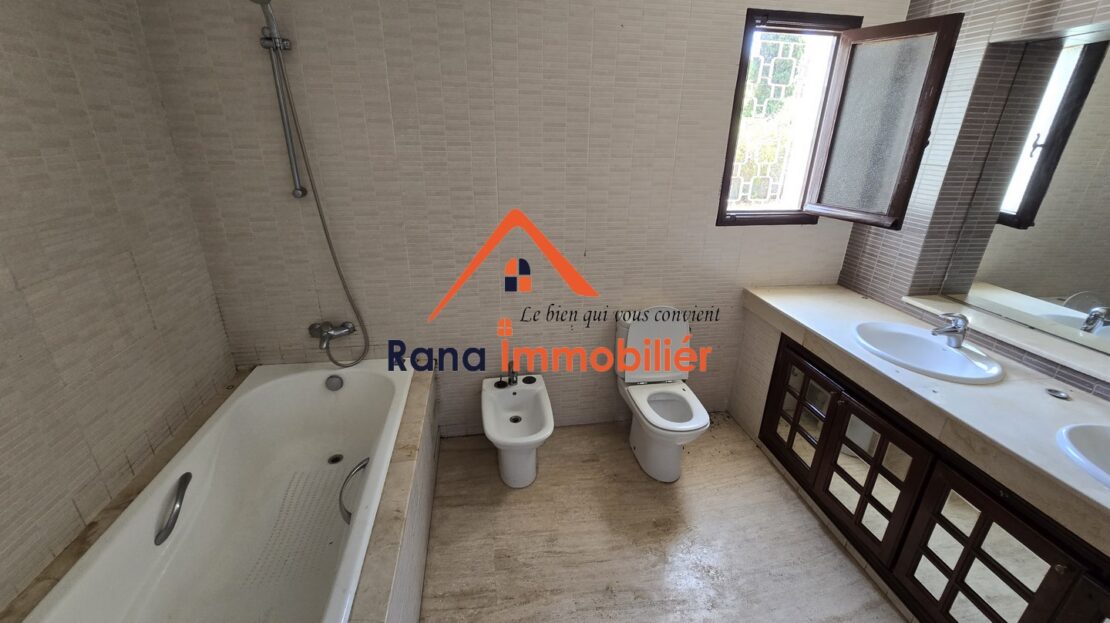 Nous mettons en vente une jolie villa d’une superficié de 2000 m², située à Souissi, dans un emplacement très calmen. dotée un grand jardin.